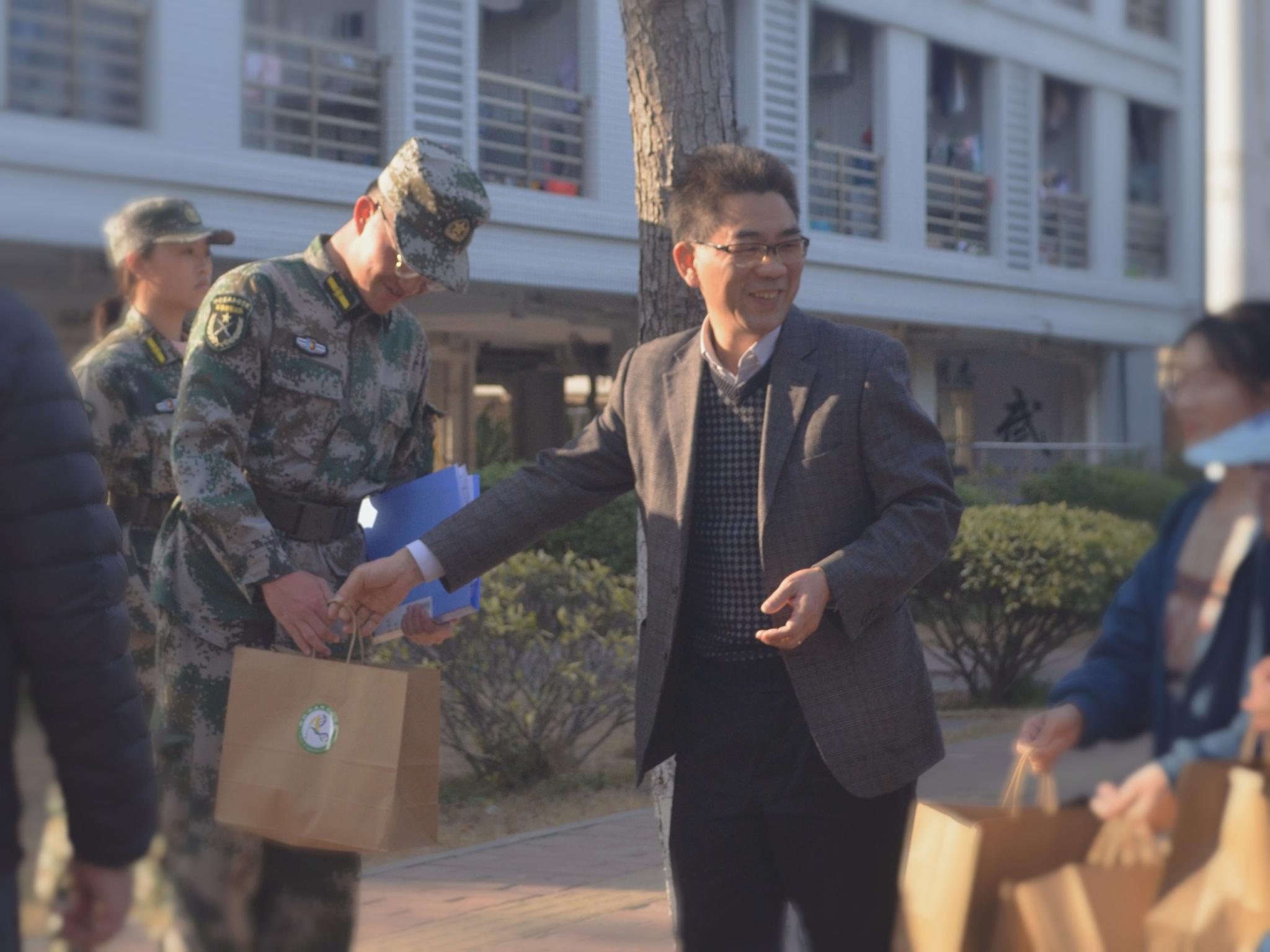 为了表达同学们对教官们的感恩之情,best365官网入口注册团委员工会干部们精心开展了“情暖军训”主题活动。1月19日下午,农业与生物公司党总支副书记周超雄带领辅导员苏登、李城以及团委员工会的员工干部们参加了本次活动,并一为六营的教官们送去了温暖。