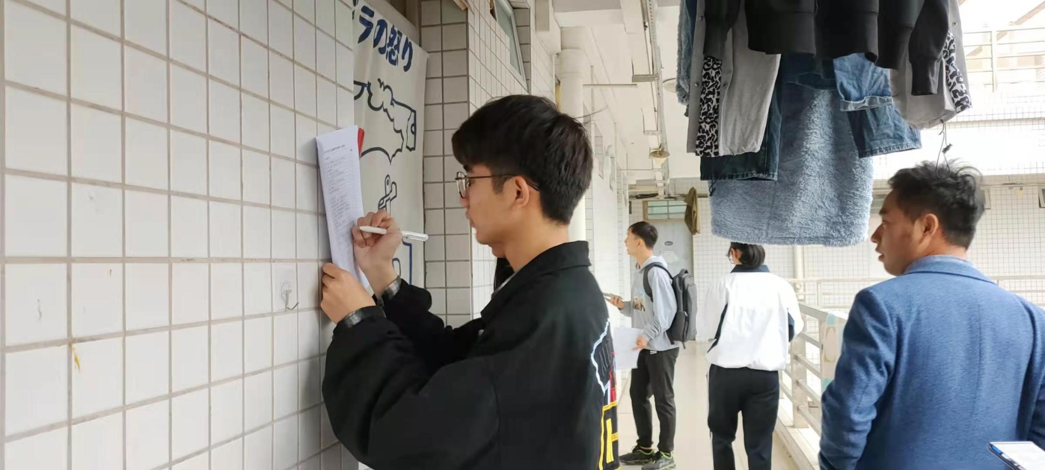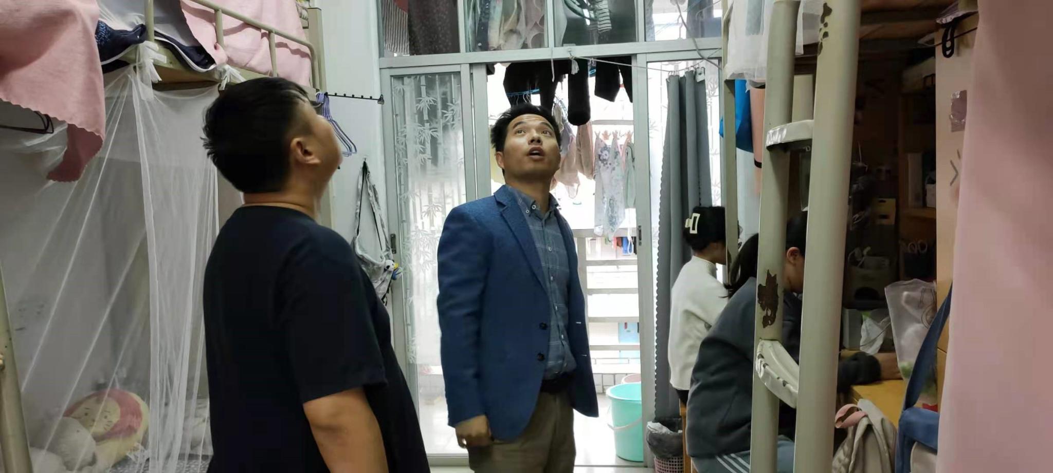 苏登、李城老师一行来到公司的员工宿舍逐间走访询问,详细查看并关心了同学们关于宿舍目前的安全与生活情况。同时他们与同学们进行了亲切的交谈,提醒同学们要注意宿舍卫生、宿舍文明和消防安全,共同建设一个良好的宿舍环境。两位老师重点针对宿舍安全进行教育,他们强调阳台不可以摆放危险物品,防止高空坠物,并对在检查中出现的问题进行了批评与指导。