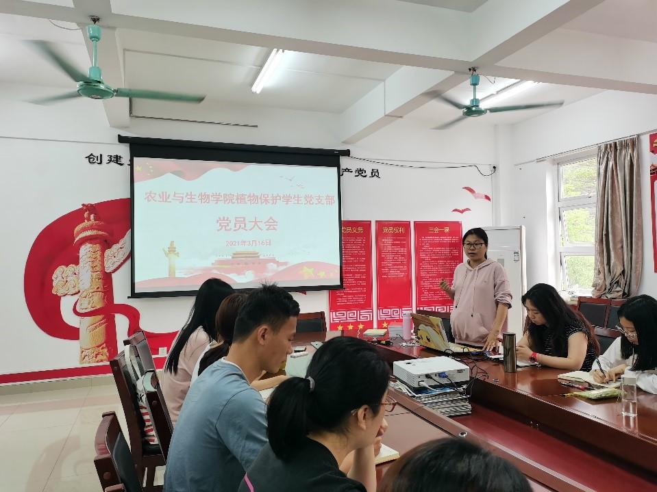为进一步提升党支部战斗力和凝聚力,高质量高标准抓好党史学习教育,3月16日下午,best365官网入口注册植物保护员工党支部在刘宇新楼313室召开新学期党员大会暨党史学习教育动员大会。支部全体党员参加了会议,会议由党支部书记高结怡同志主持。