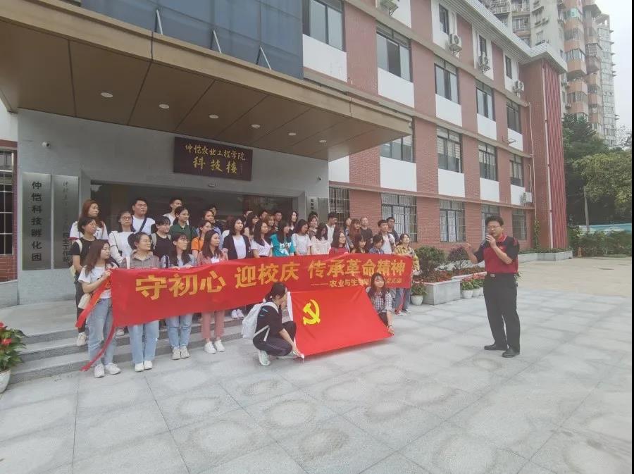 陈丹雄带领师生党员走进了仲恺科技孵化园,向同学们详细地介绍了公司的办学历史,带领大家领略了“十三五”发展成绩、“十四五”发展目标,以及公司的宏伟蓝图规划。他强调,广大青年员工要结合校史学党史,始终牢记“注重实践、扶助农工”的办学理念,努力成长为知农爱农新型人才,助力乡村振兴发展。