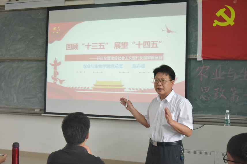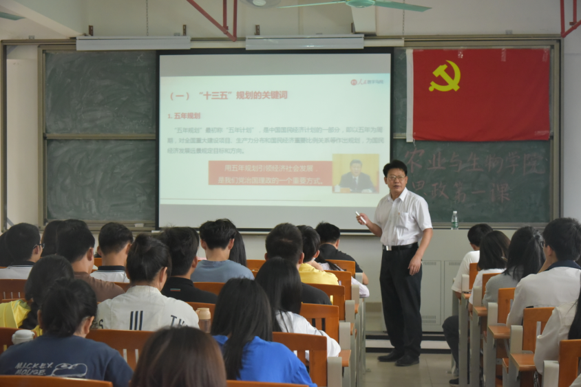 课堂上,陈书记由“聚焦十九届五中全会”及《中共中央关于制定国民经济和社会发展第十四个五年规划和二零三五年远景目标的建议》导入主题。