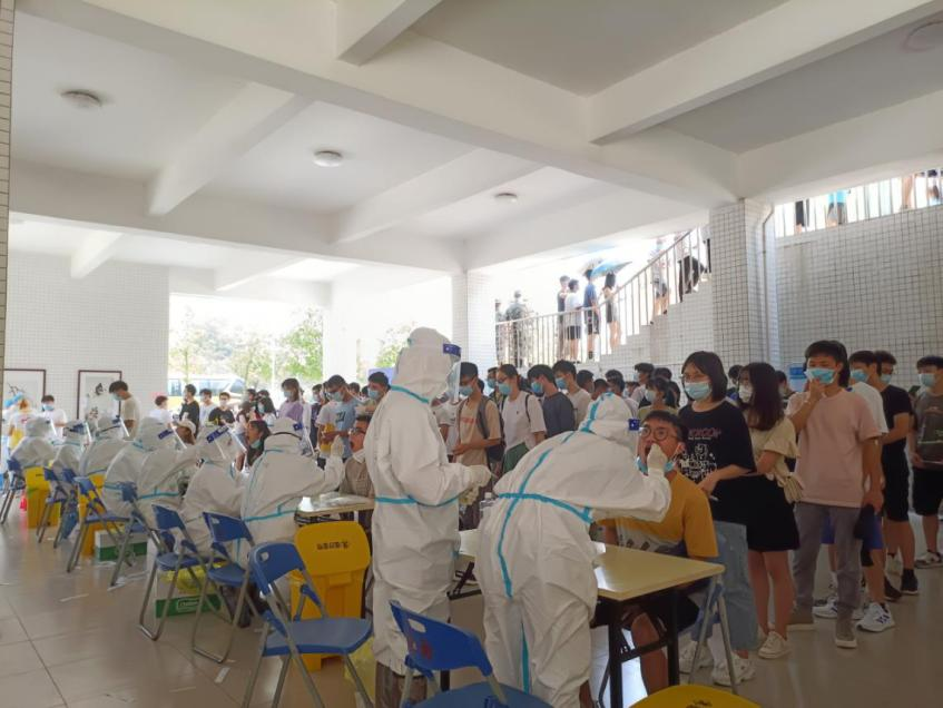 近日,广州新冠疫情骤起,牵动着全国、全省人民的心。根据白云区疫情防控指挥部开展全员核酸检测工作要求,同时为了进一步确保全校师生的安全与防控疫情,公司于6月4日晚至6月5日中午开展了全员核酸检测工作。公司积极配合公司相关工作的安排部署,组织号召全体员工进行核酸检测,安排志愿者整合队伍、维持秩序,有力的确保了全院在校员工共1200多人次的核酸检测工作于6月5日顺利完成。