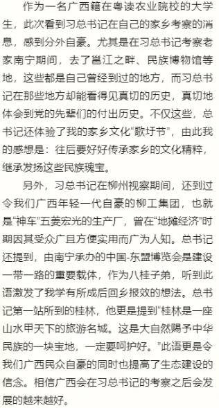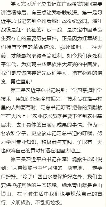 四月下旬习近平总书记在广西壮族自治区考察,先后深入桂林、柳州、南宁等地调研。习总书记从党和国家事业发展全局的战略高度,对实现经济持续健康发展、加快推进乡村振兴、提高人民生活品质、开展党史学习教育等提出殷切期望和明确要求。