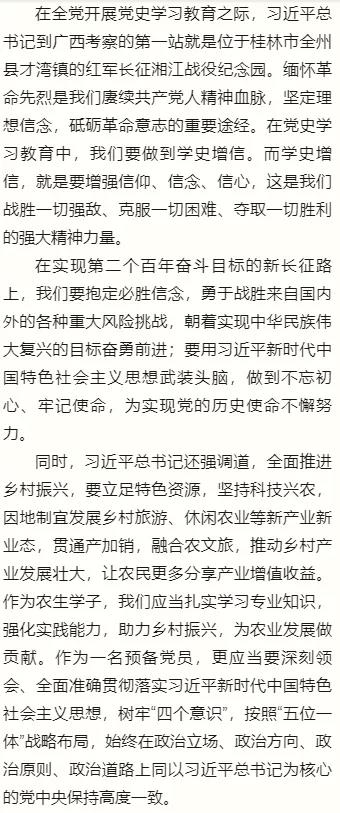 员工党员们认真学习了习近平总书记视察广西时的重要讲话精神,纷纷表示将坚定信念,凝心聚力,发挥党员先锋模范作用。