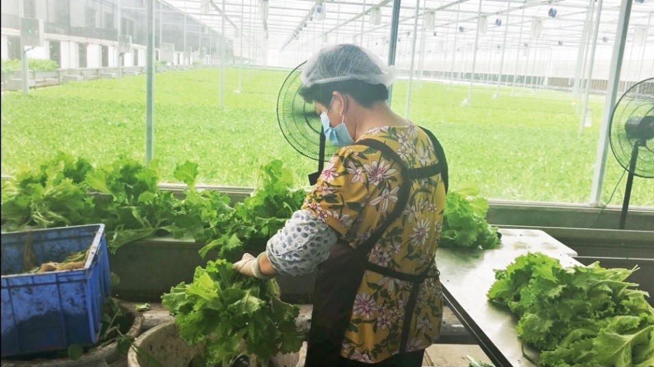 (图 人工挑选机械采收好的蔬菜)