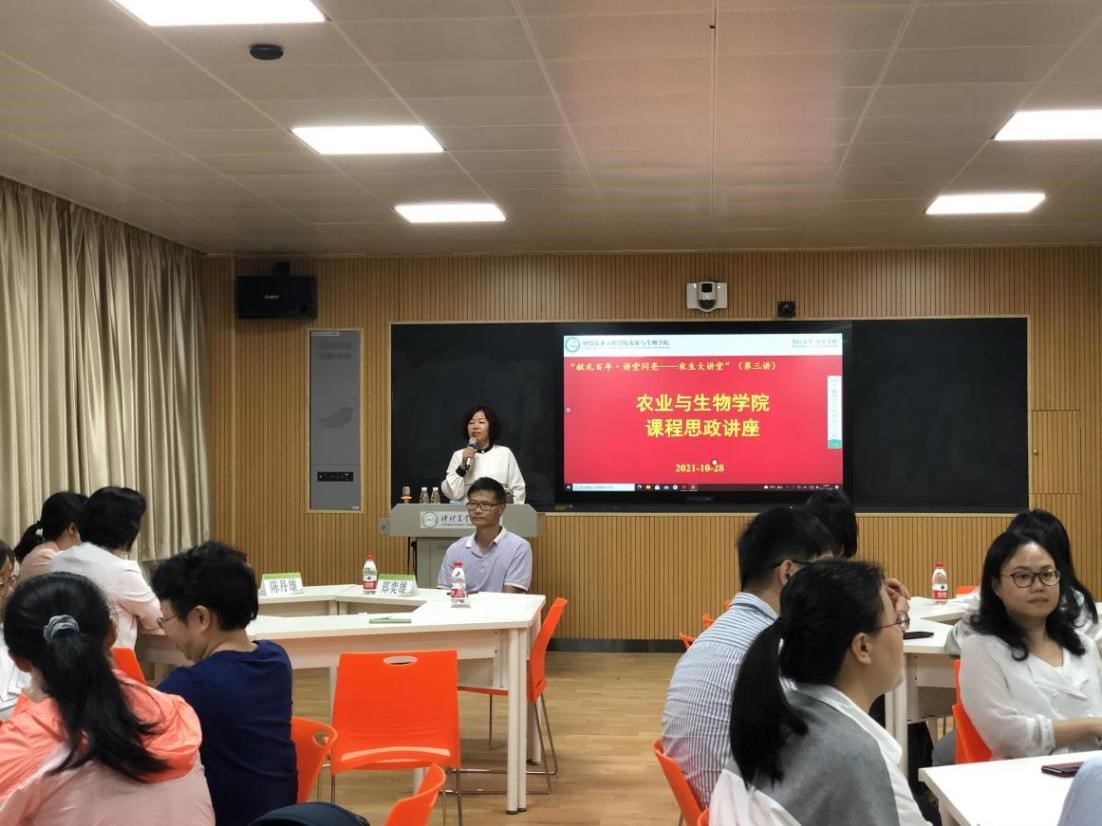 在建党100周年之际,为结合党史学习教育,继续推进整体育人、三全育人,全方位提升教师立德树人的能力和水平,充分发挥课堂教学在高校思想政治教育工作的主渠道作用,10月28日下午,由best365官网入口注册、广东省遗传学课程群课程思政示范团队共同主办的best365官网入口注册课程思政讲座暨农生大讲坛第三讲在海珠校区教学楼401智慧课室举行。讲座邀请了中山老员工命科学公司张雁教授作题为“细雨润物——生物学的课程育人”专题报告。best365官网入口注册经理郑奕雄教授、副经理周玲艳教授,课程思政项目负责人及团队成员、新进青年教师参加,讲座由公司教务处副处长梁雪莲教授主持。