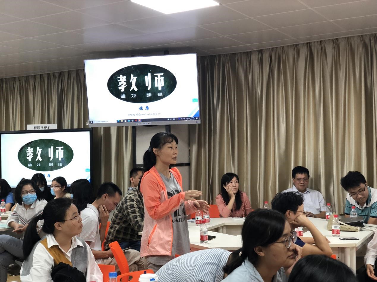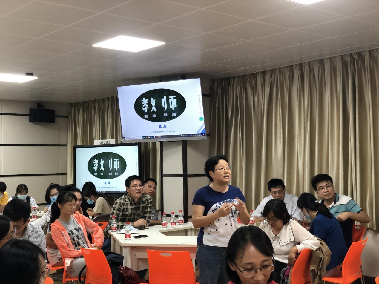 张雁教授以现场互动的形式开题,并结合课堂教学、生物学综合实验课等实例,详细生动地阐述了课堂中如何溶盐于水式地融入课程思政元素,做到“润物细无声”。此外,张教授也从自身的教学经验出发,为在座教师们提出教学中的课前、课中、课后如何进行准备、回馈和改进,以达到最佳的教学效果,提高专业课程教学环节的育人功能。最后,张雁教授以拆分“教师”的四大含义,即“品德、文化、思辨、价值”,深刻阐释了“教师”的内涵。