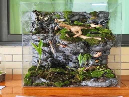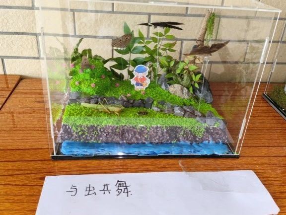 在昆虫微景观PPT讲解环节,每个参赛队伍通过讲解精心制作的PPT,向评委和观众们介绍了各自作品的主题以及寓意,他们的讲解生动有趣,不仅传达了对昆虫世界的好奇和热爱,还展示了他们的研究能力和表达技巧。其中,与虫共舞队的作品《虫意盎然》展现人与自然和平共处状态,呼吁大家面对自然要常怀敬畏之心;随便队的作品《虫语花韵》不同昆虫与植物构成和谐唯美的生态景观,体现了生命之美在于美美与共的主题;纯情五蟑螂队的作品《梦蝶TV》体现了过去与自然关系,以及现在科技与生物之间联系;有点队的作品《虫语秘境》带领我们探索昆虫界中不同细小生命的奥秘……评委老师对于各队伍的作品以及PPT展示进行了精准的点评并给出了许多让参赛选手受益匪浅的建议。
