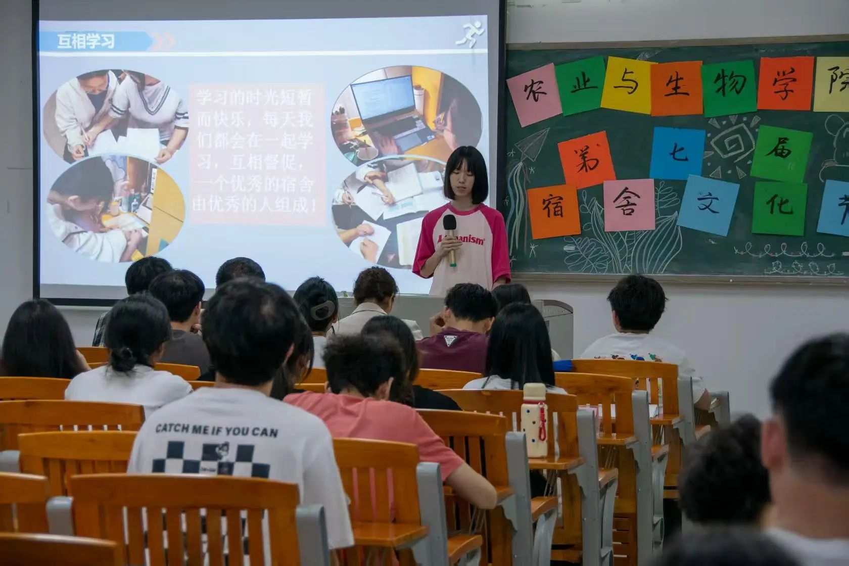 本次比赛有五个宿舍进入决赛,他们分别是1栋304、3栋535、23栋1010、23栋320、23栋311。比赛开始,各个宿舍依次进行PPT展示,就自己的宿舍成员介绍、宿舍环境、学习氛围和宿舍团建四个方面向大家展现宿舍的独特风采,有的宿舍还附上宿舍合照、生活照等,展现和谐温馨宿舍氛围。