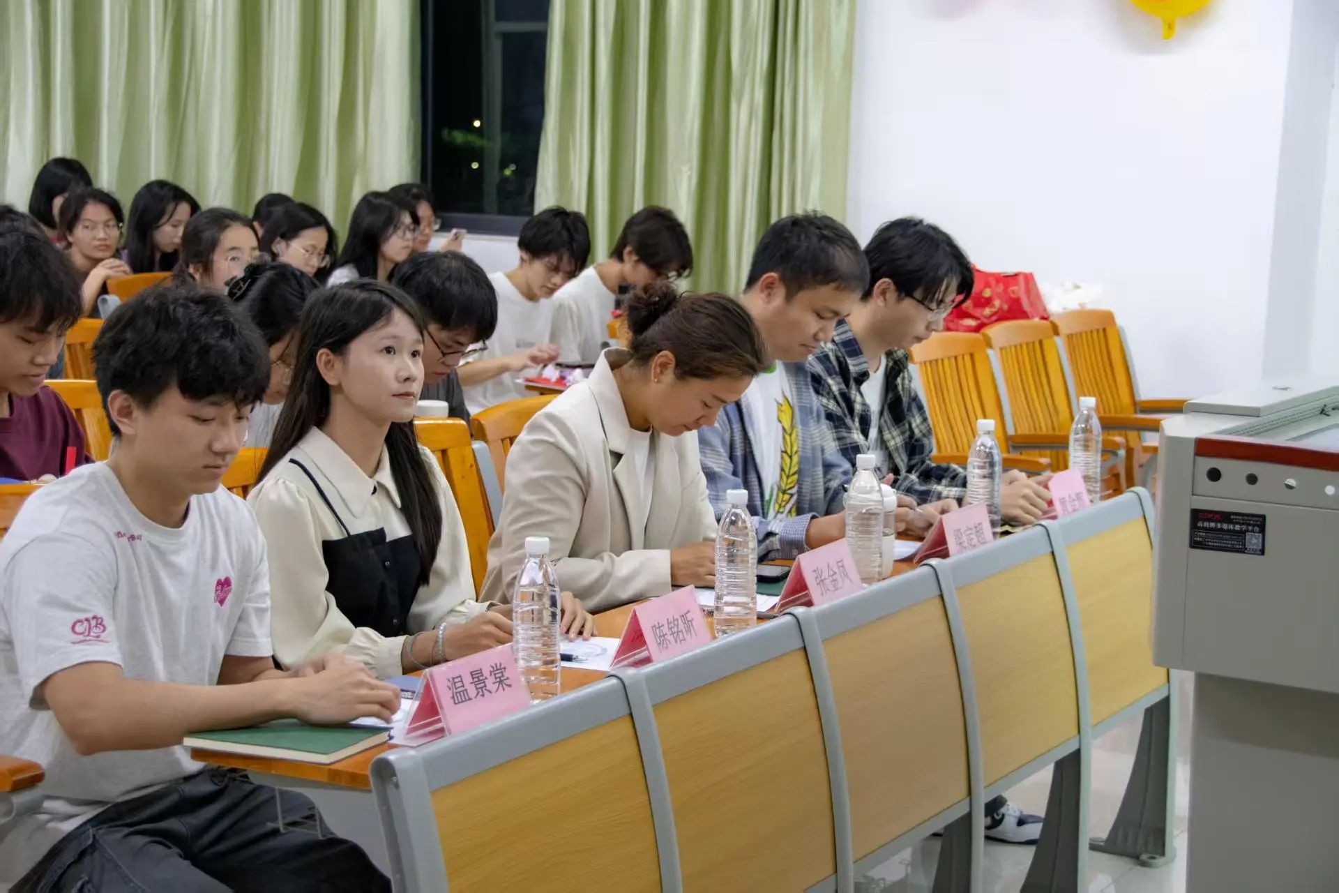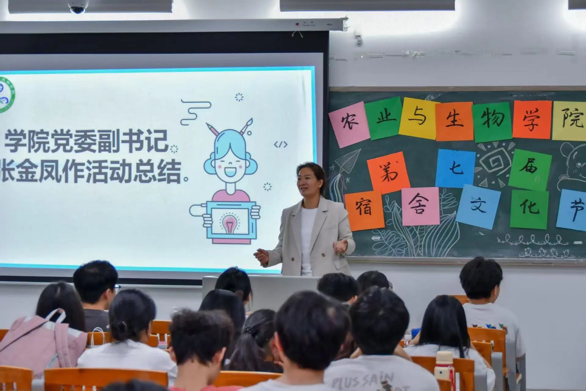 最后,张金凤对本次活动进行总结发言。她首先向获奖团队致以热烈祝贺,欣喜于同学们饱满的参与热情。接着,她重点点评了趣味配音、歌舞表演等节目,高度赞扬同学们极具创意的表现形式与感染力十足的舞台呈现。她鼓励大家把握青春时光,珍惜同窗情谊,在日常相处中多些理解包容,少些摩擦争执,以互助互信为纽带,携手打造温馨和睦、积极向上的宿舍文化环境,让宿舍成为共同成长的温暖港湾。